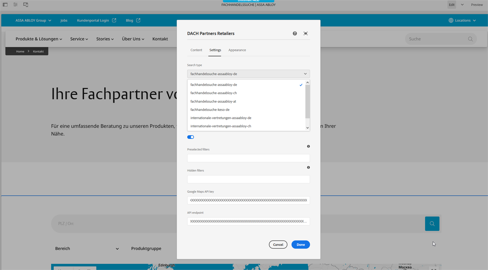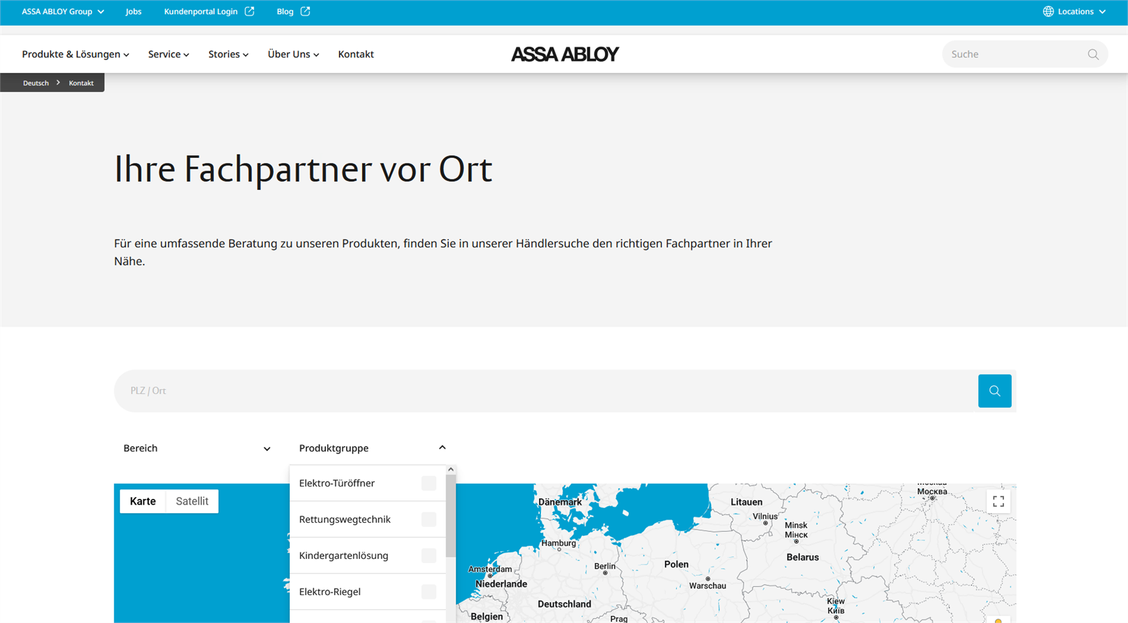 Im Zuge der Migration der konzernweiten Websites zu Adobe AEM erhielten wir von ASSA ABLOY DACH (DE/AT/CH) den Auftrag, eine Komponente zu entwickeln, die Bezugsquellendaten aus dem CRM nahtlos in Adobe AEM integriert.