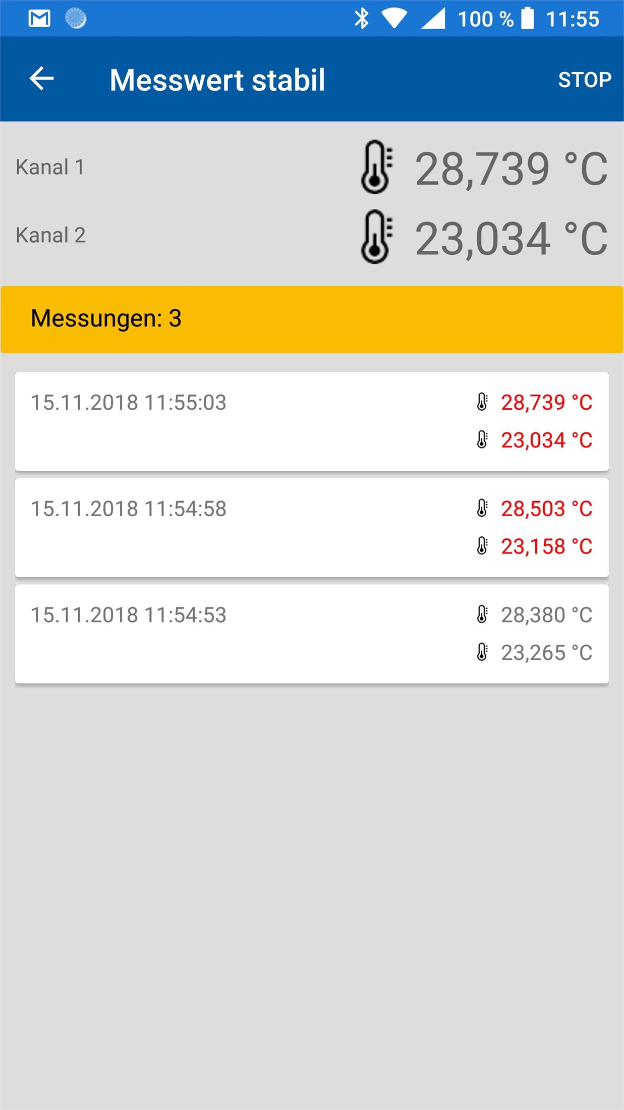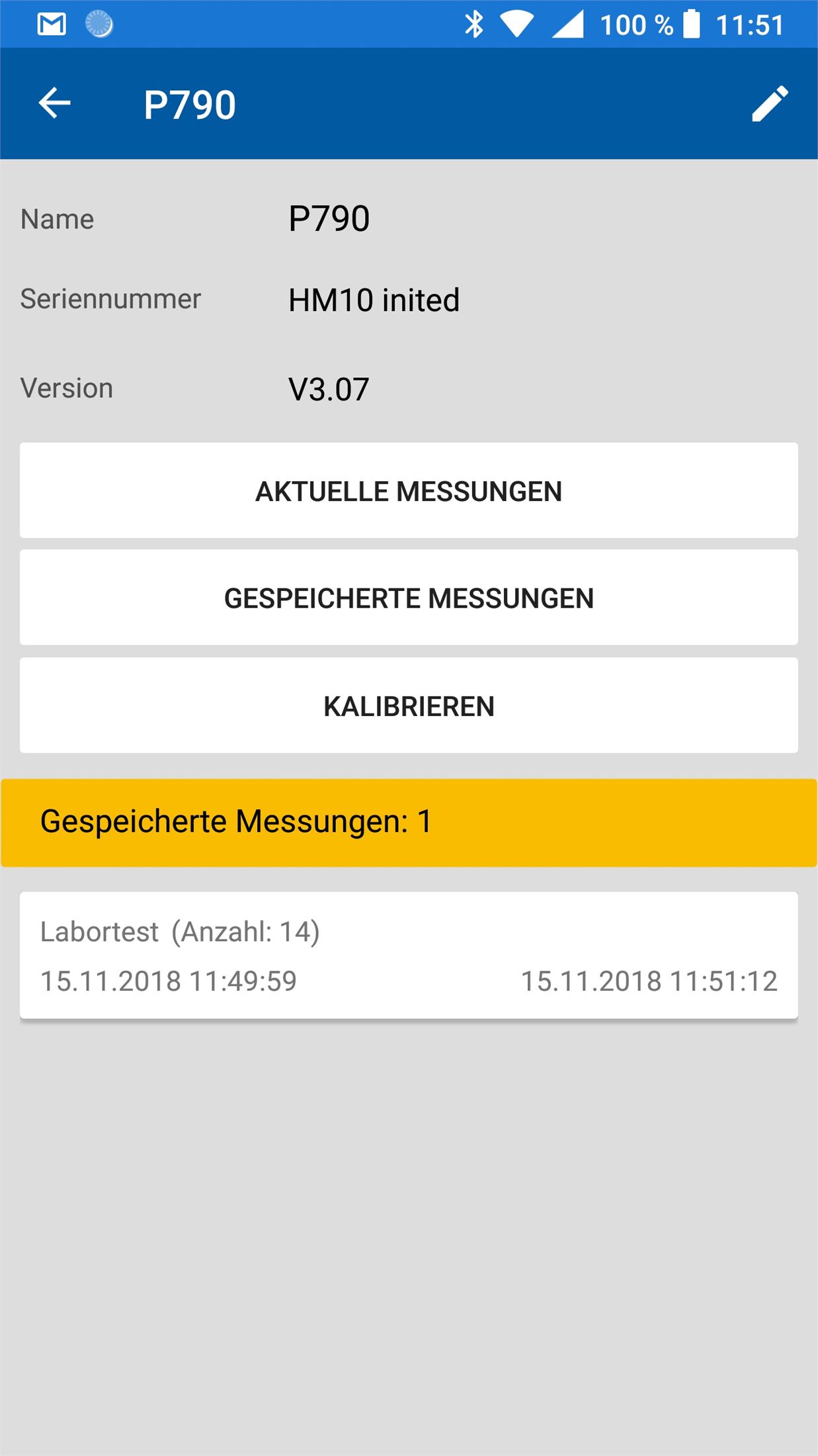 Kommunikation per Bluetooth: Die App ermöglicht eine nahtlose Verbindung zu den Präzisionsmessgeräten über Bluetooth. Dadurch können die Messdaten schnell und drahtlos übertragen werden.