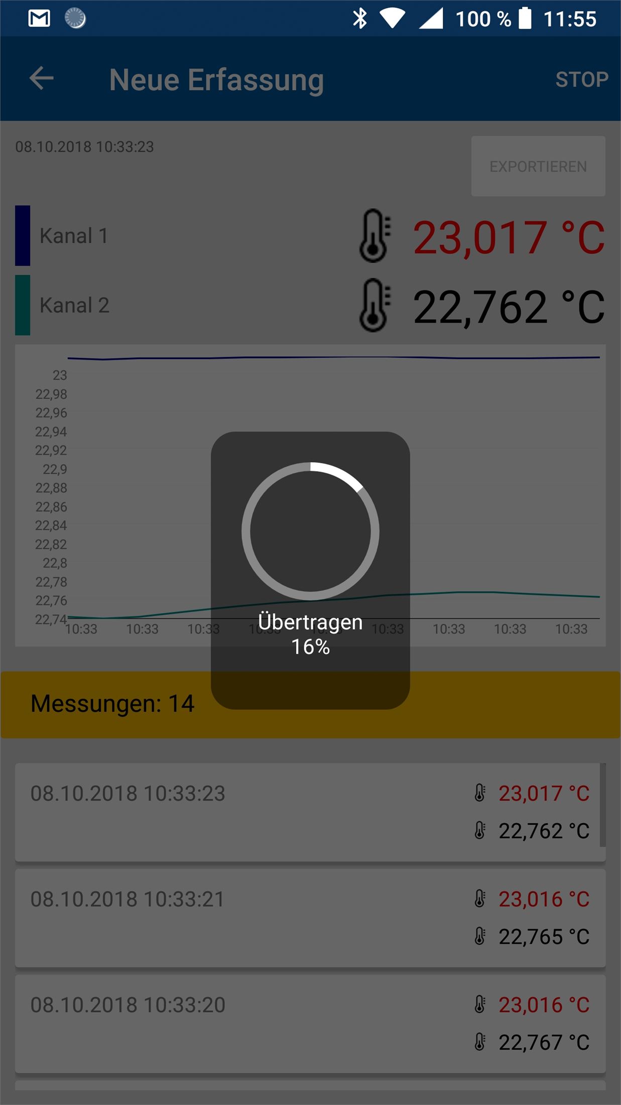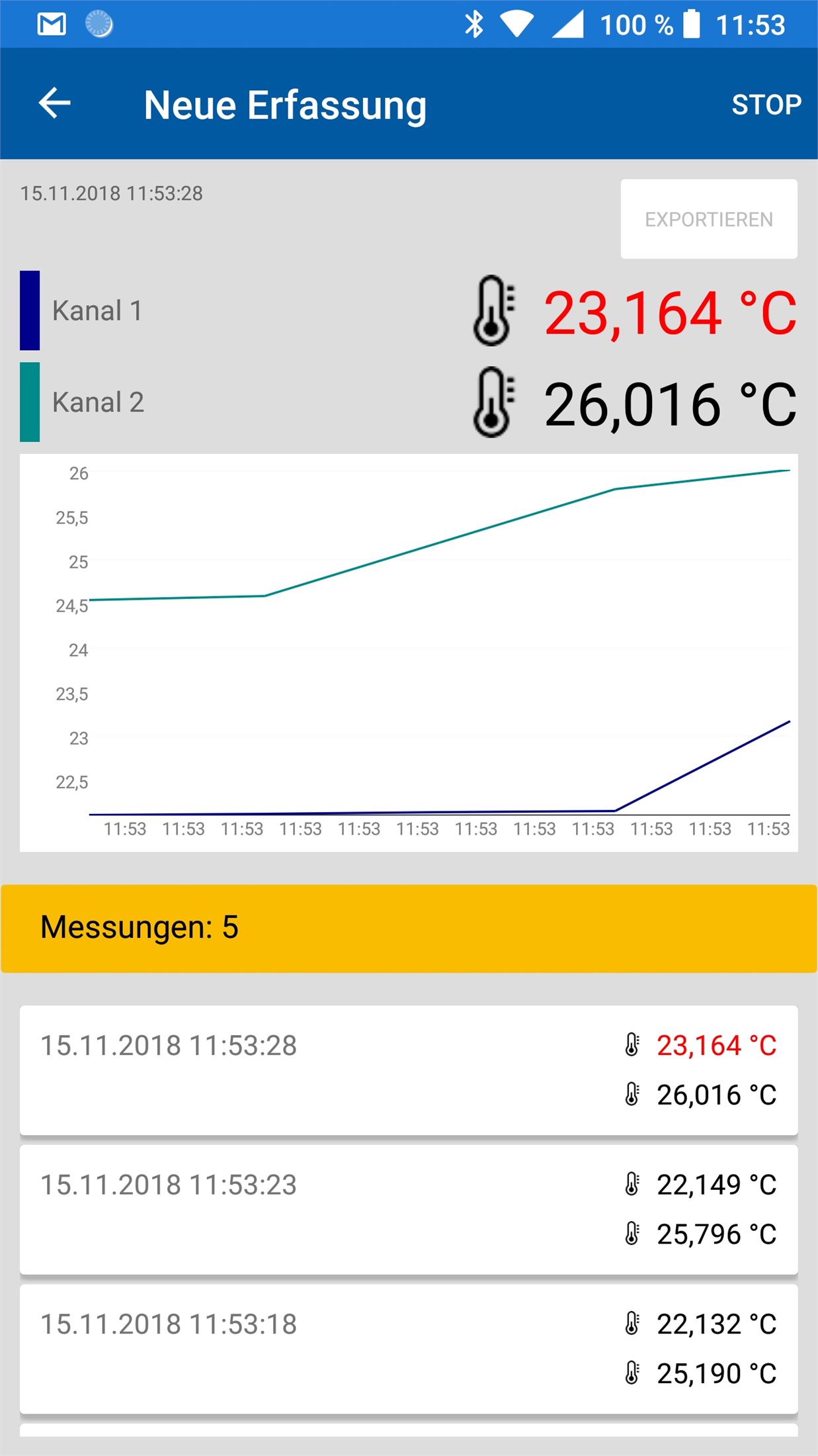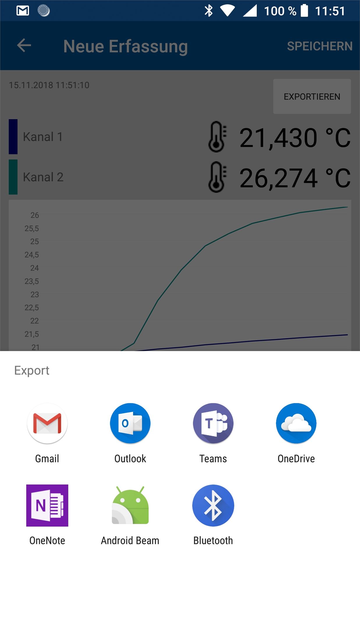 Exportieren der Daten: Die erfassten Messdaten können einfach exportiert werden. Benutzer haben die Möglichkeit, die Daten in verschiedenen Formaten zu speichern, um sie bequem zu teilen oder weiterzuverarbeiten.