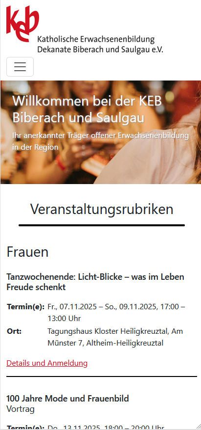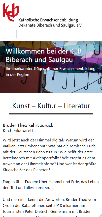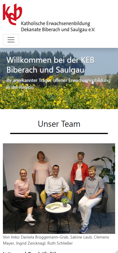 Nachdem wir bereits für die Katholische Erwachsenenbildung Zollernalbkreis e.V. und Tuttlingen e.V. einen erfolgreichen Relaunch ihrer Websites durchführen durften, beauftragte uns nun auch die Katholische Erwachsenenbildung Biberach-Saulgau mit dem Relaunch ihres Internetauftritts.