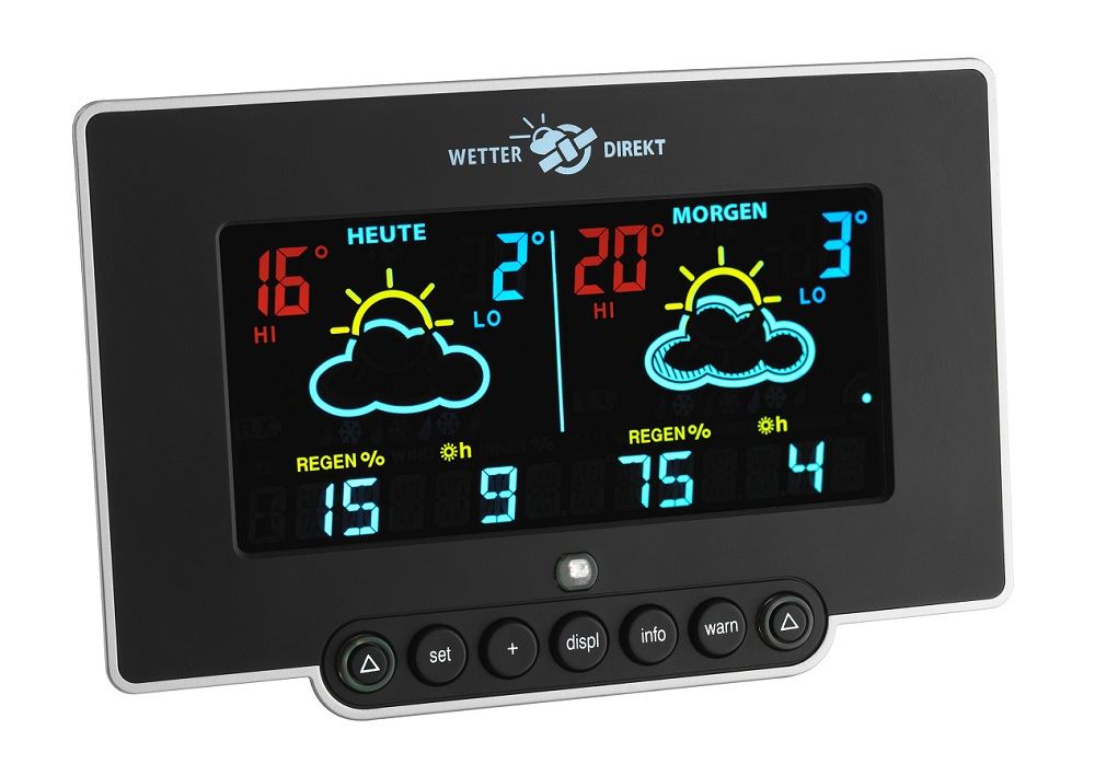 Die WETTERdirekt Funk Wetterstationen, vertrieben von den Unternehmen TFA Dostmann und Technoline, zeichnen sich durch die Fähigkeit aus, die aktuelle Wettervorhersage für den eigenen Standort in den kommenden Tagen anzuzeigen. Sie sind in einer Vielzahl von Größen erhältlich und bieten unterschiedliche Features, wie beispielsweise die Auswahl zwischen 50 oder 300 Regionen für die Wettervorhersage, die Möglichkeit der Vorhersage für 1-6 Tage sowie die Option mit oder ohne Aussentemperatursensor.